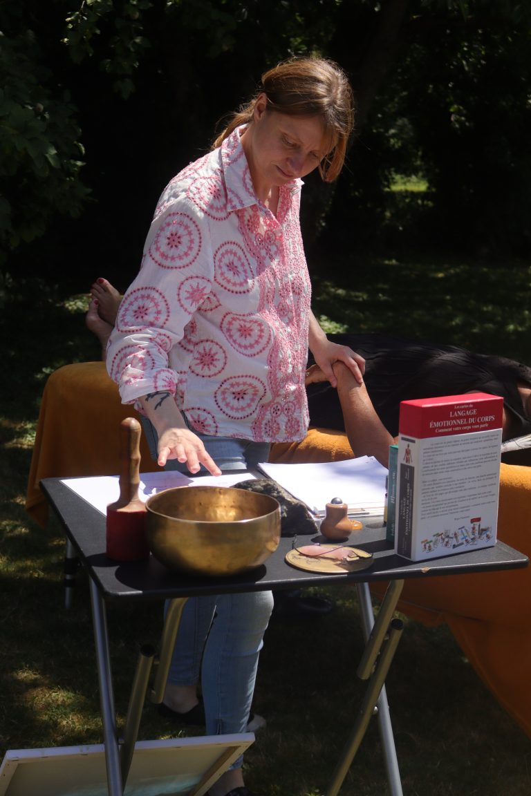 Je fais une synchronisation avec votre corps à l’aide du test musculaire et des mouvements de Brain GYM.